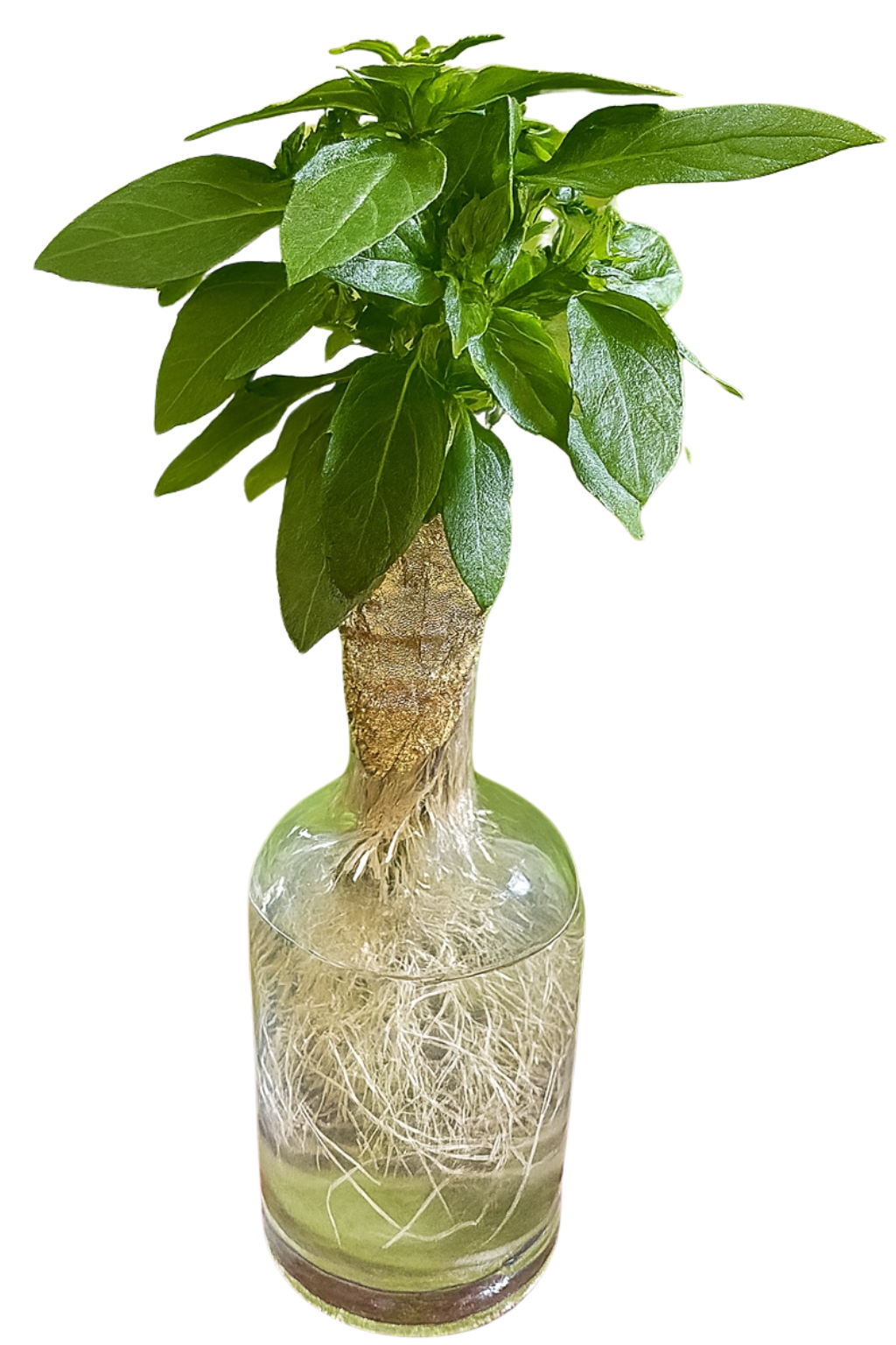 During this early stage, check the water every day. Once the roots reach the solution, your basil will grow much faster. Then, you can slowly lower the water to create space for air.